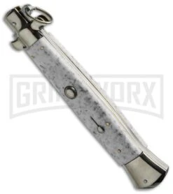This Zero Italian automatic sports a black G-10 handle and a stonewashed dagger blade. The AGA Campolin Zero features a fully automatic leverlock design. It has a stainless steel bolstered handle with grippy textured G-10 handle scales.