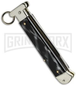 AGA Campolin really hit this one out of the park with a flawless fit and finish, snappy automatic deployment, and rock solid blade lock up. The blade is made from Austrian N690co steel with a plain edge and a satin finish. Item includes a tip-down pocket clip.